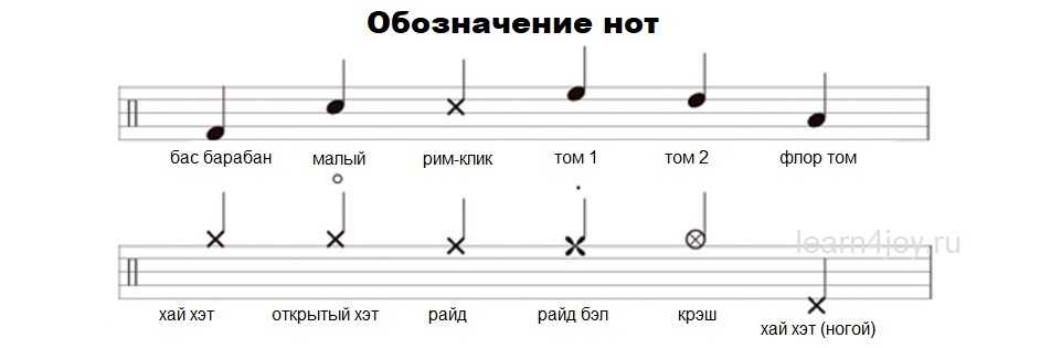 Обозначение нот барабанной установки