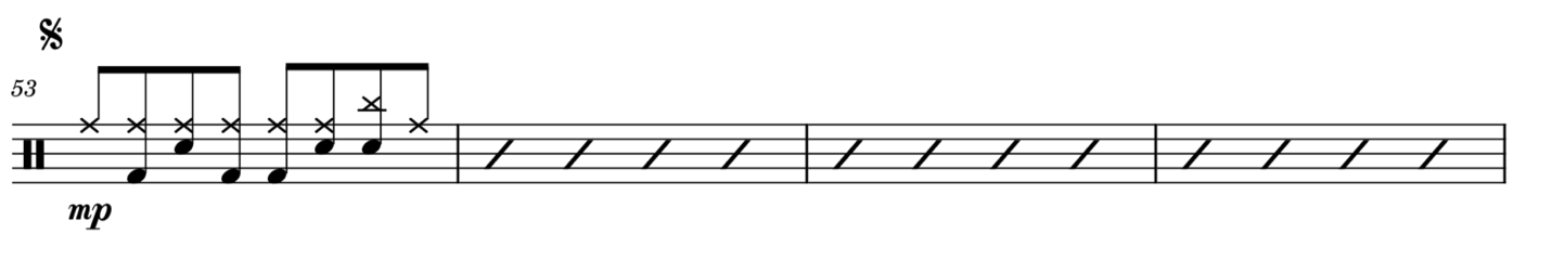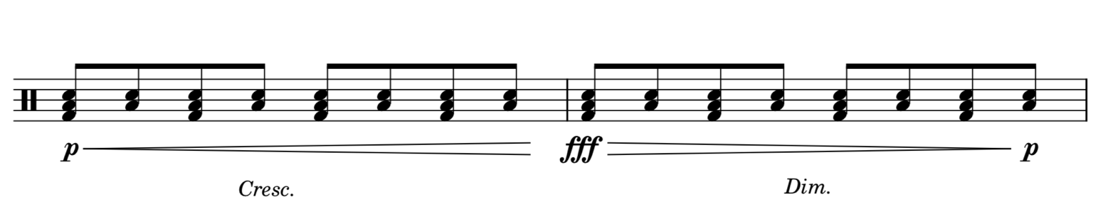 Динамические оттенки являются одними из самых важных символов на любой диаграмме ударных. Они помогают вам играть с чувствительностью и передавать важные изменения в музыке. Если вы добьётесь динамики на барабанах, все в группе вас полюбят!