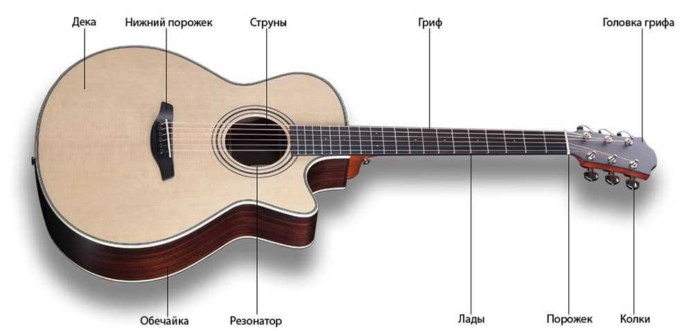 Начнем с самого простого: взгляните на свою гитару. У неё есть некоторое количество струн (будем рассматривать пример с 6-струнной гитарой), а также лады на грифе.