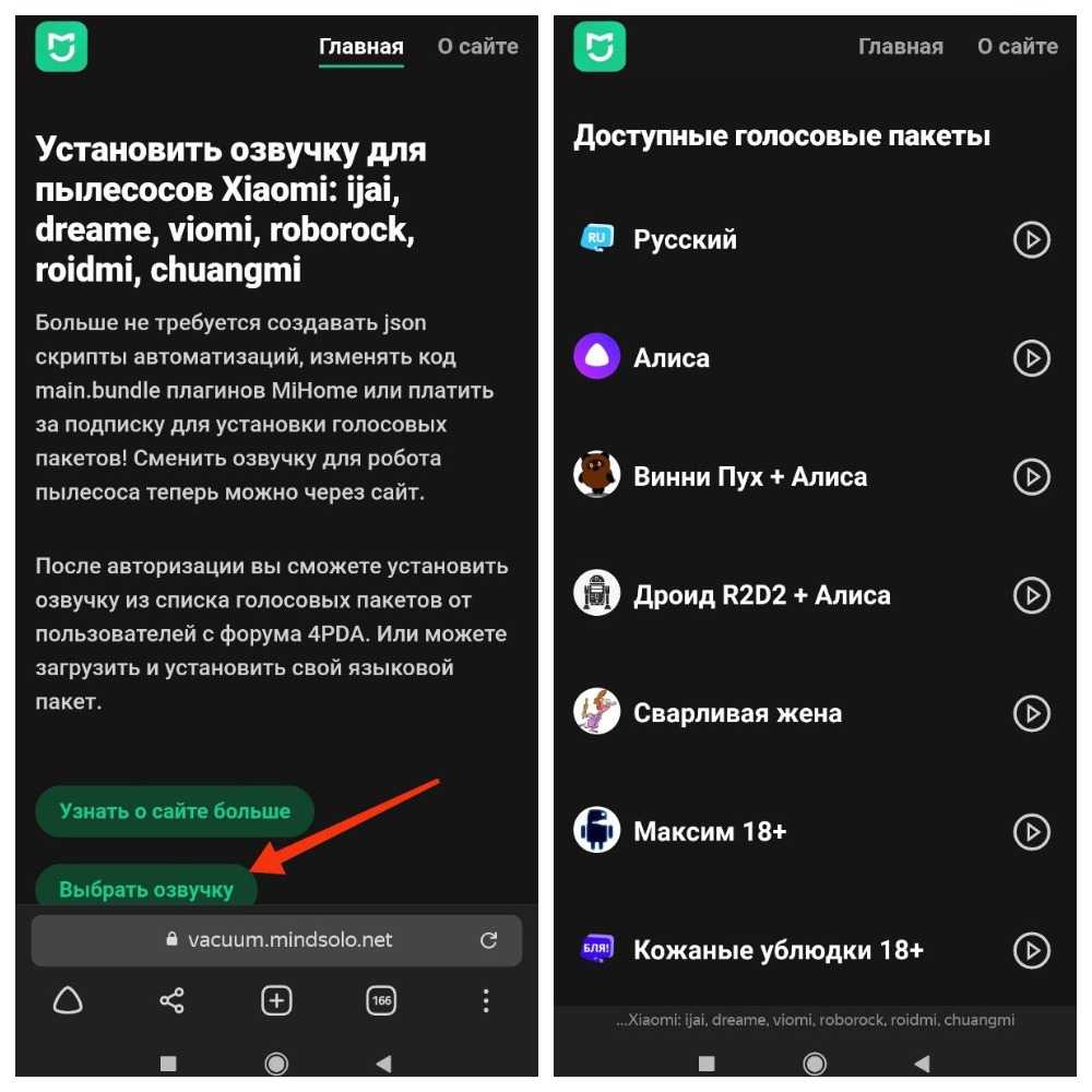 Стоит отметить, что эти пакеты могут быть установлены не на все модели роботов-пылесосов Xiaomi. Например, для пылесоса 1S доступна только стандартная русскоязычная озвучка.