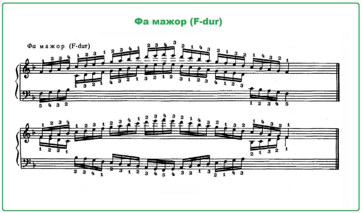 А для удобства запоминания аппликатуры в гаммах, предлагаю данные карточки с проверенной и одобренной в образовательном музыкальном стандарте аппликатурой.