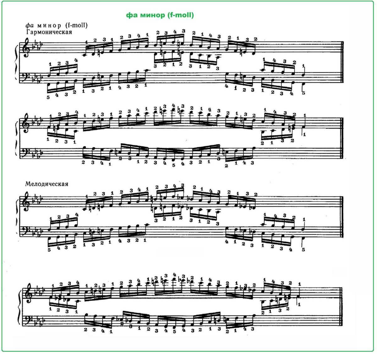Мажорные и минорные гаммы в октаву и противоположном движении.