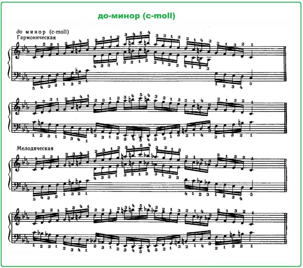 Также сначала строим гаммы натурального до-минора и гармонического: