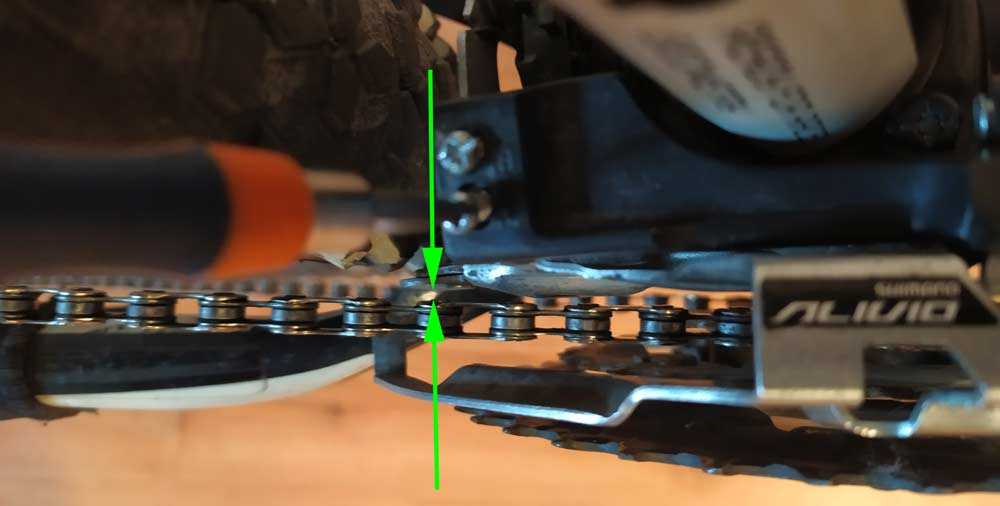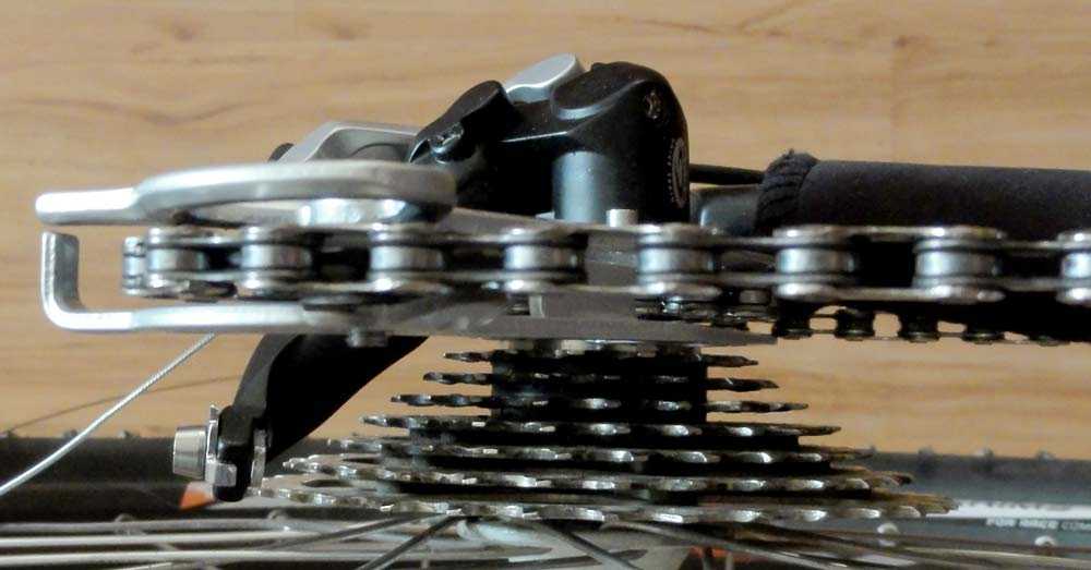 - Рамка натяжителя цепи должна располагаться параллельно звёздам кассеты