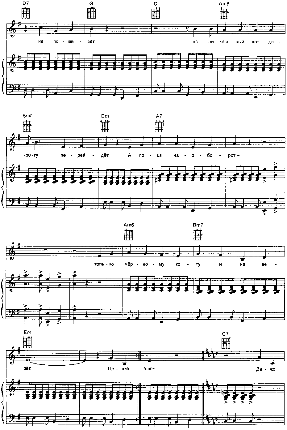 Бедный кот От усов до хвоста Был черней, чем сама чернота! Да и песенка, в общем, о том, Как обидно быть черным котом!