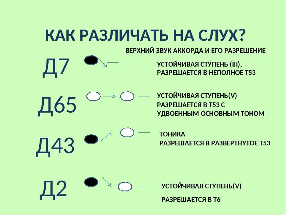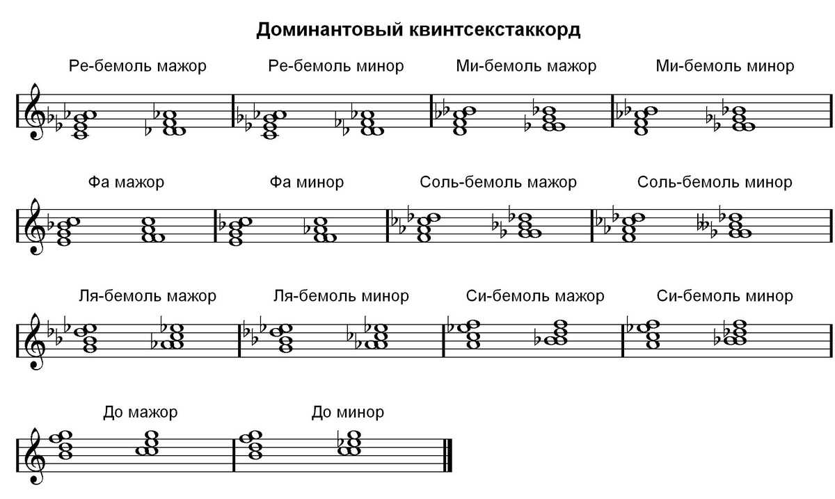 | V65 | квинтсекстаккорд | VII | м3 +м3 + б2 |