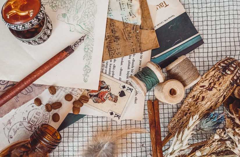 Состаривание, или дистрессинг, – это еще одна серия приемов, позволяющих придать изделию такой вид, будто ему уже пара столетий. Для состаривания обычно используют дистресс-чернила, кофе, темные чернильные подушки и даже обычную акриловую краску. Пригодятся также наждачная бумага и дистрессор. Техника подразумевает, что мастер создает на бумаге и ткани потертости, пятна, нарочитые сгибы и рваные края.