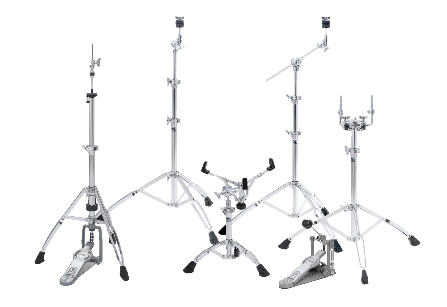 Некоторые производители при создании ударных установок используют не привычные стойки под барабаны, а рамные стойки. Эти конструкции, выполненные из металлических труб, достаточно тяжёлые и громоздкие, но устойчивые.