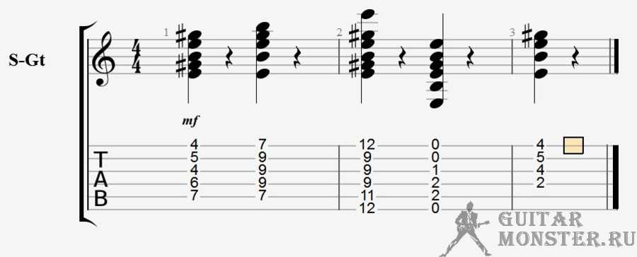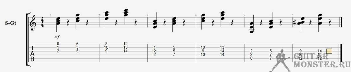 Выполните небольшое упражнение. Сыграйте на гитаре 2 последовательности.