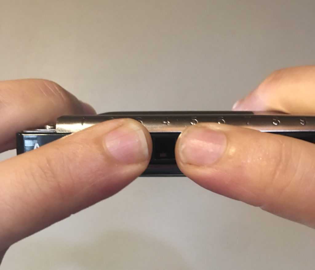 Если вы не уверены, берете ли вы одну ноту, вы можете буквально закрыть пальцами отверстия 3 и 5 и подуть в губную гармошку, чтобы четко слышать, как она должна звучать, например: