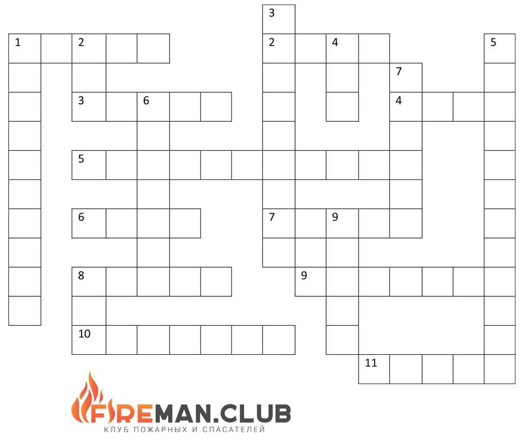 По горизонтали: 1 – пожар; 2 – вода, 3 – рукав, 4 – ожог, 5 – температура, 6 – окно, 7 – искра, 8 – глаза, 9 – бригада, 10 – занятия, 11 – пламя.
