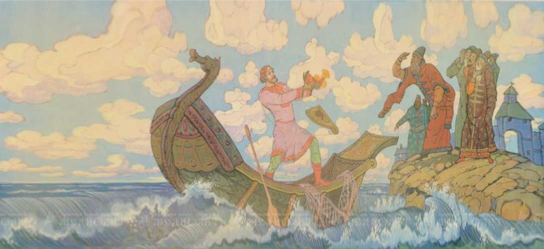 Разбогател купец Садко чудесным образом: в одном из вариантов былины в обретении богатства ему помогло озеро Ильмень, которое превратило рыбу в монеты. По другой версии, с помощью морского царя Садко выловил три рыбины с золотыми перьями и выиграл спор с новгородцами. Новгородским купцам пришлось отдать свои лавки, которые они поставили в заклад – так Садко стал «купец богатый».