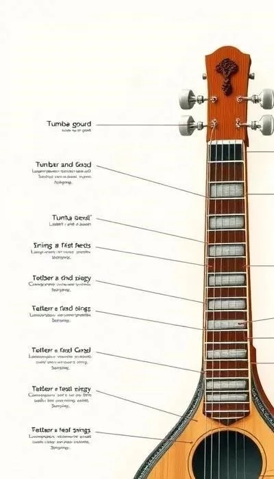 - Бридж (кальба): Передает вибрацию струн на деку.