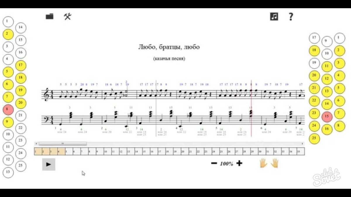 . Номера звука низкой, средней и высокой семерок те же. Это подсказки для игры по слуху
