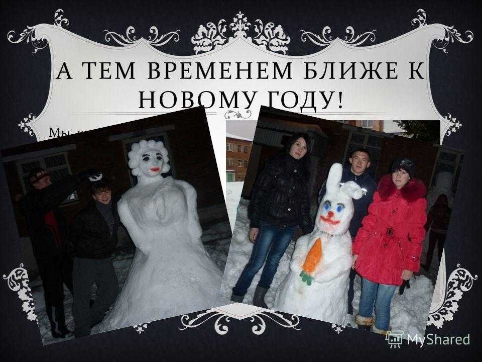 А ТЕМ ВРЕМЕНЕМ БЛИЖЕ К НОВОМУ ГОДУ ! Мы, как смелые гусары, Выстроили снеговика. Он будет символом УДАЧИ На все зимние дела !