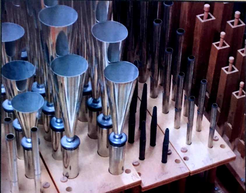 Трубы лабиальных и языковых регистров Hauptwerk’a — слева направо Trompete 4′ . Trompete 8′ Gedacht 4′, Quinte 51\3, Doppelgedacht 8′