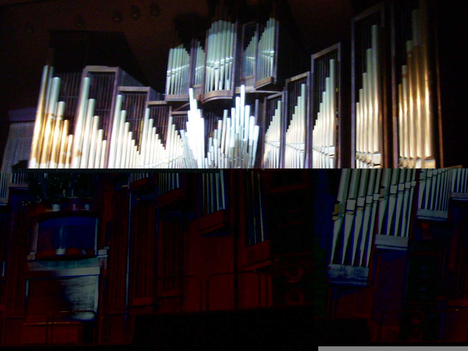 Органный зал в Кафедральном соборе г. Кёнигсберга (Калининграда). На самом верху птица Феникс-символ вечного возрождения. Под ней внизу дева Мария — покровительница собора.
