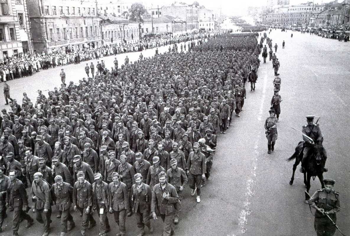 Колонна пленных немцев на Садовом кольце, Москва, 1944 г.