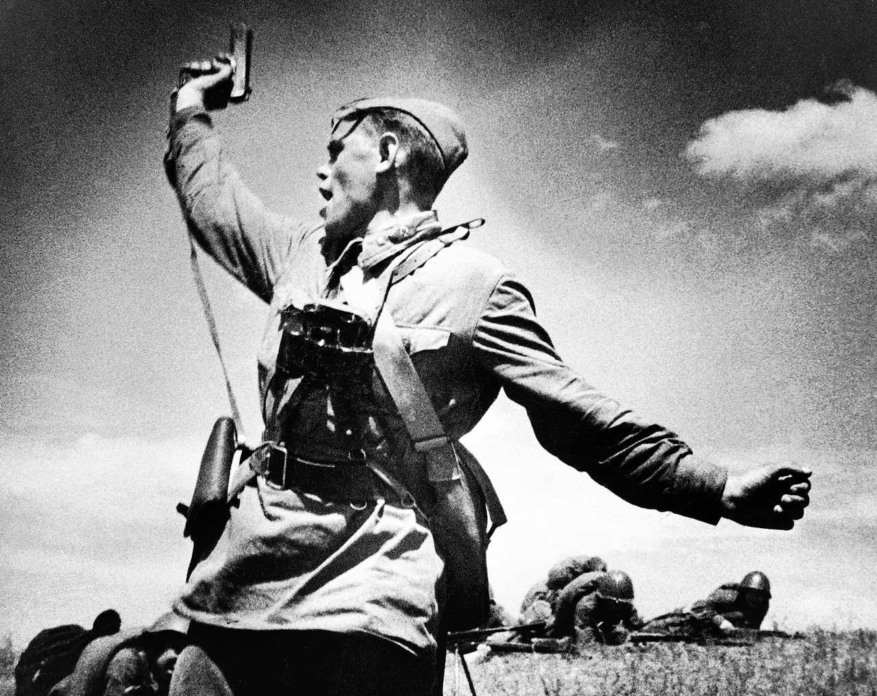 Комбат ведёт в атаку своих солдат, Украина, 1942 г.