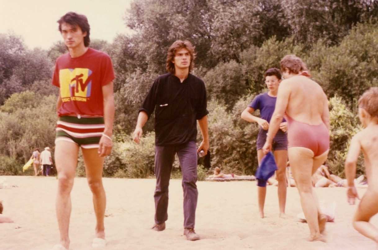 Виктор Цой (слева) в яркой футболке, привезённой из Америки